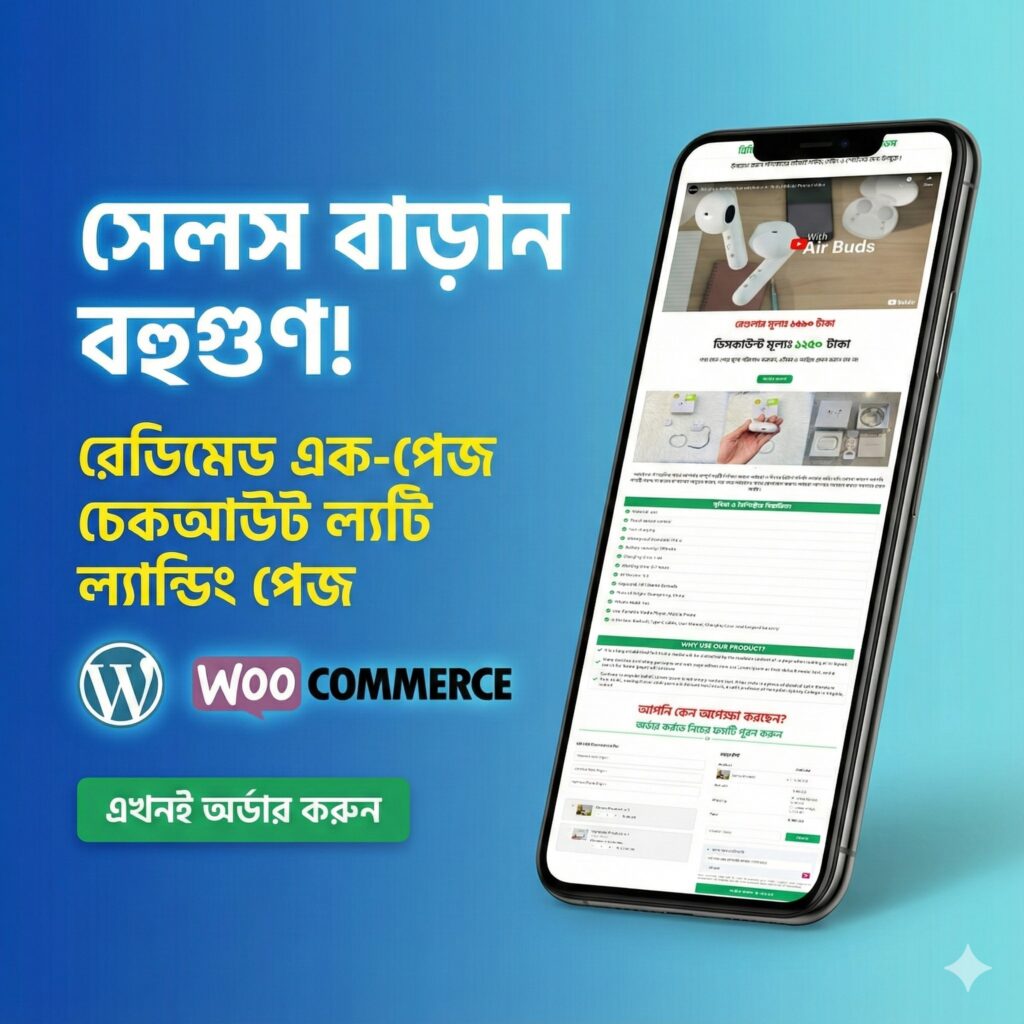 Boost your sales with this professionally designed Single Product Landing Page. It features a streamlined One-Page Checkout system powered by WooCommerce and Elementor. Perfect for Dropshipping or E-commerce businesses in Bangladesh and globally.